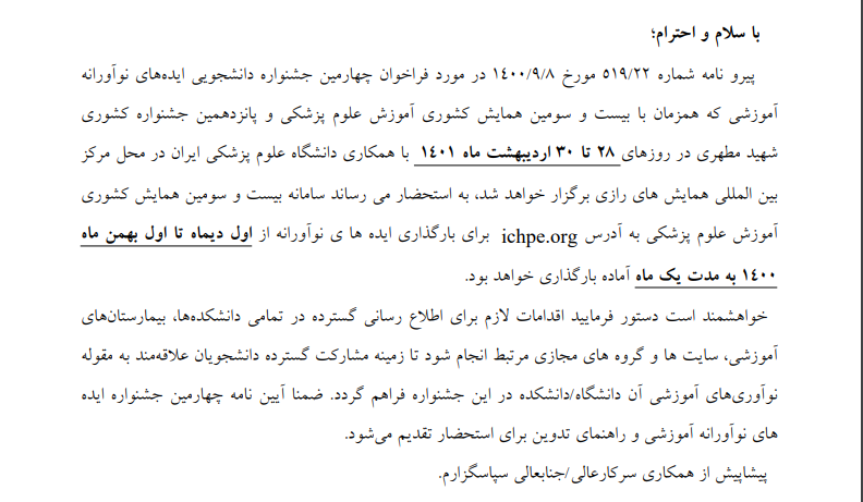 اعلام ادرس سامانه همایش برای بارگزاری ایده های نو اورانه اموزشی چهارمین جشنواره ایده های نو اورانه دانلود بخشنامه گروه خبری : رویدادها کد خبر : 11913 کلمات کلیدی