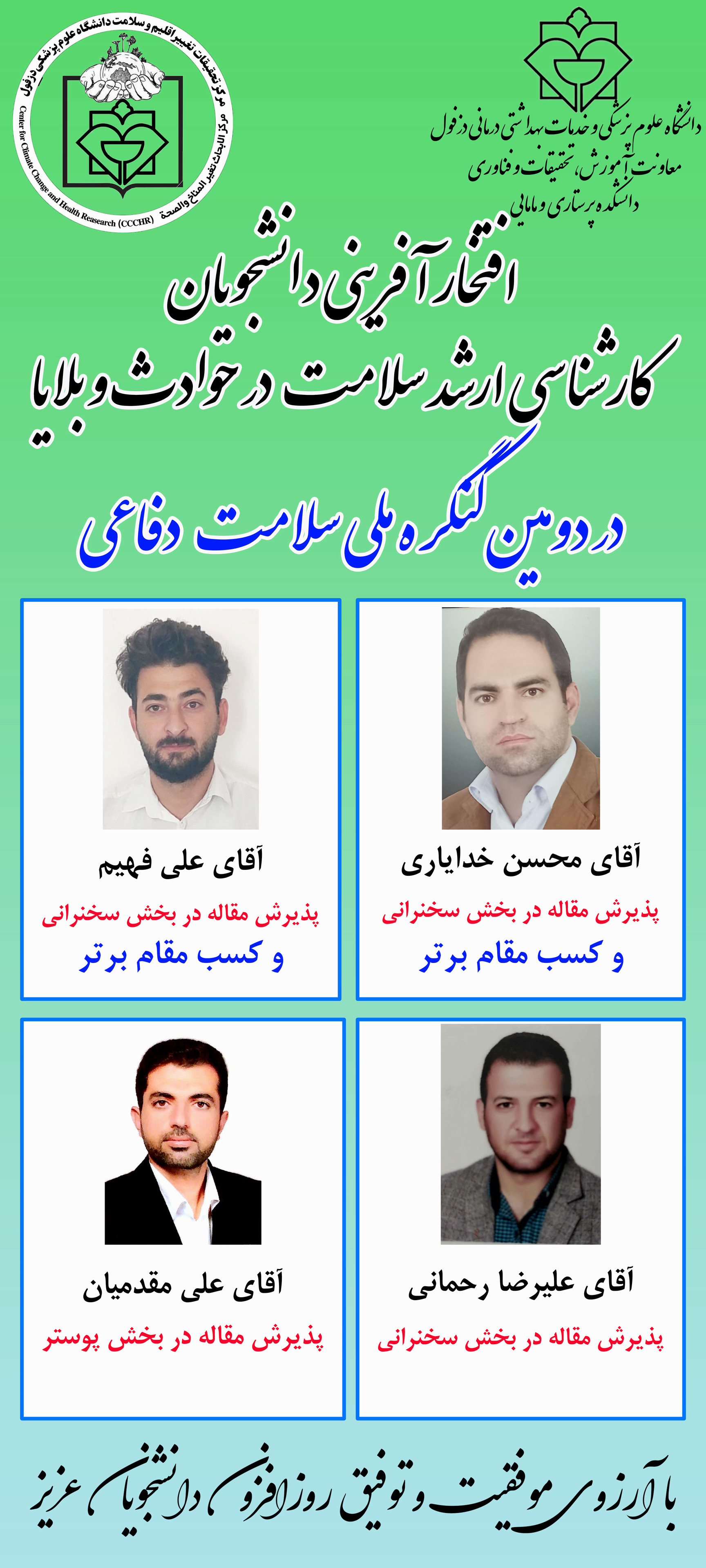 کسب موفقیت دانشجویان کارشناسی ارشد سلامت در حوادث و بلایا در دومین کنگره ملی سلامت دفاعی گروه خبری : تصاویر کد خبر : 18611 کلمات کلیدی